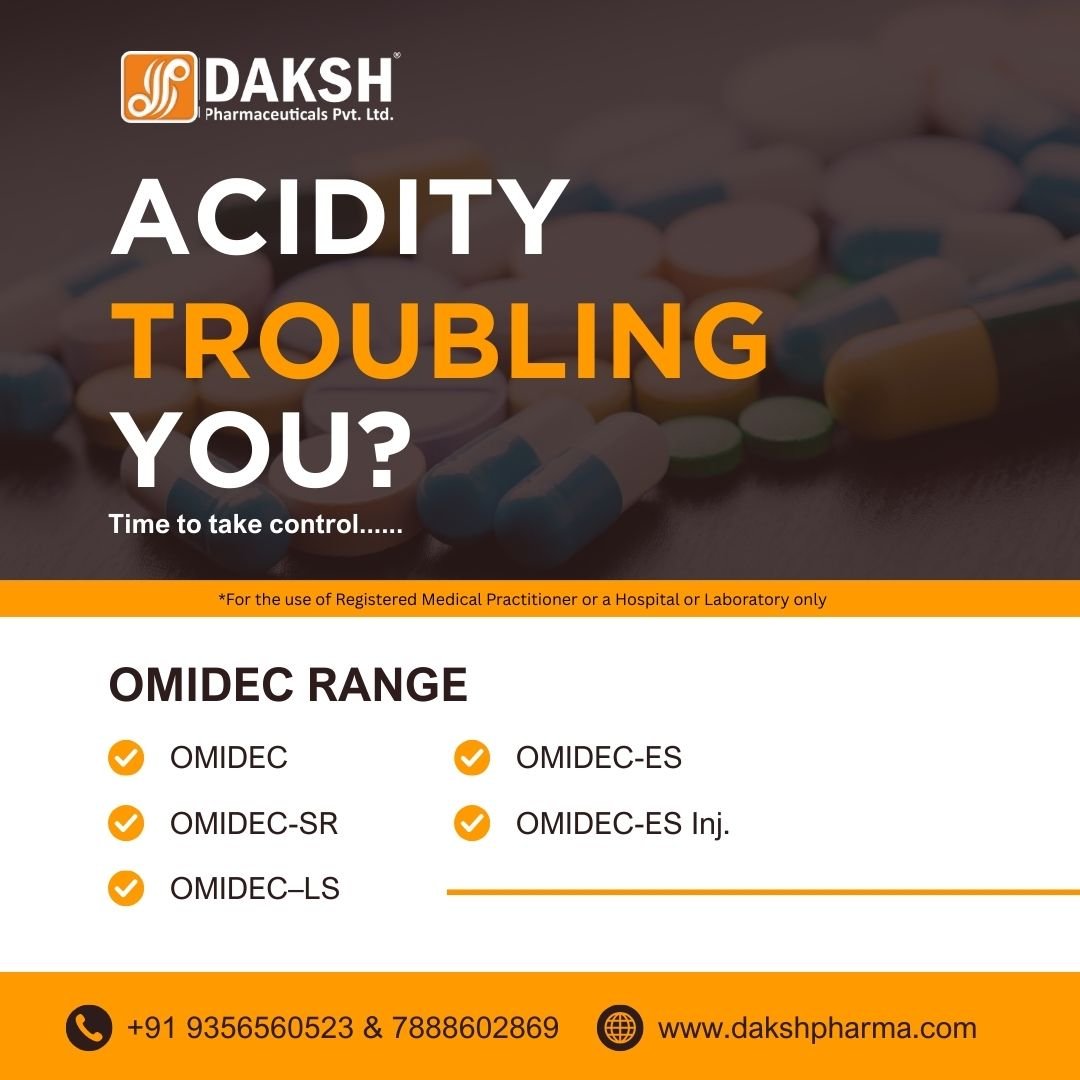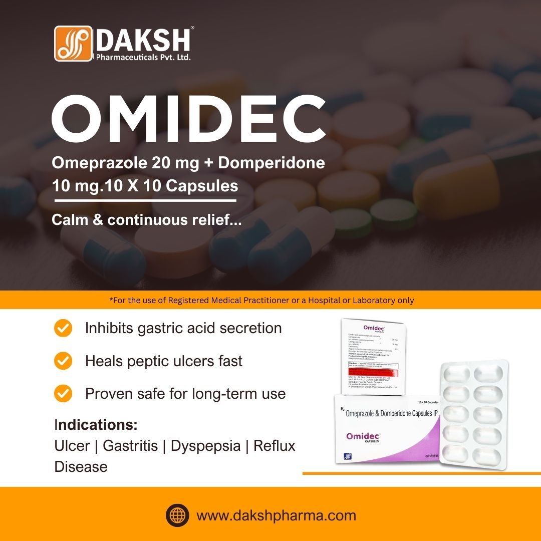 OMIDEC™ is a doctor-recommended, clinically effective treatment for acidity, GERD, and ulcers. With advanced PPI & prokinetic formulations, it provides rapid, long-lasting relief & improved digestive health.